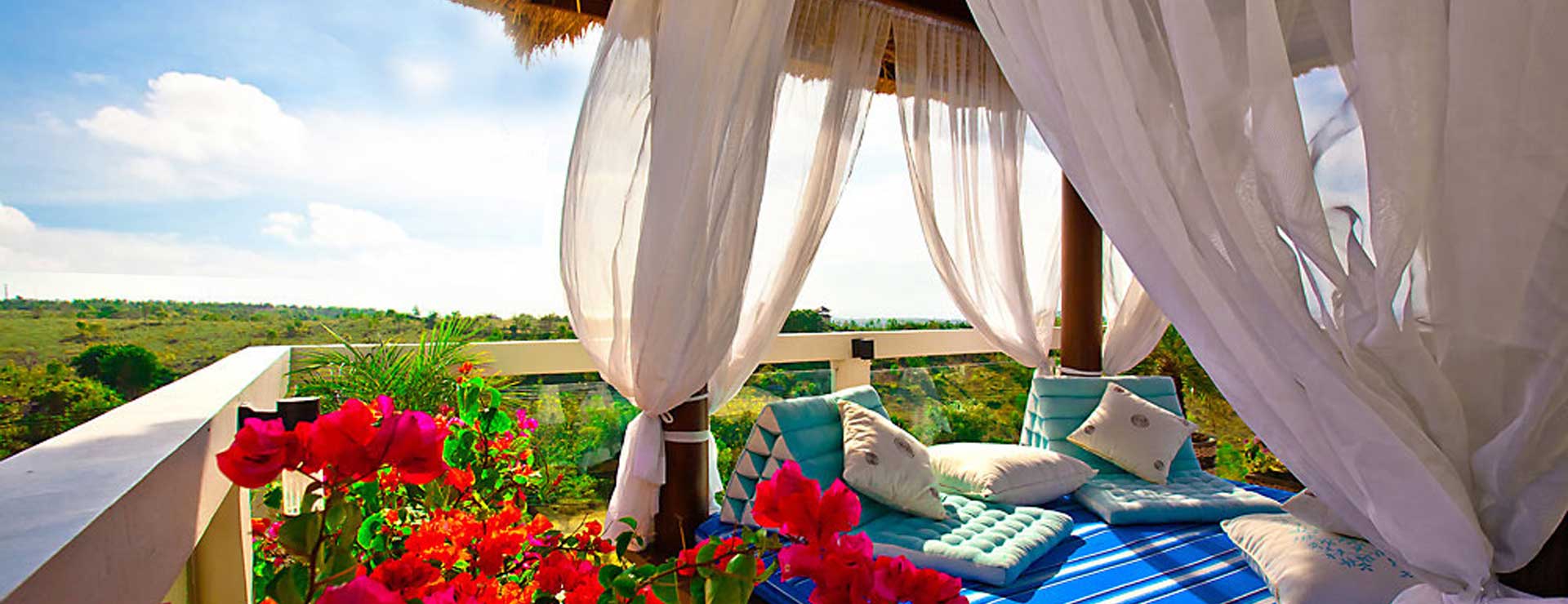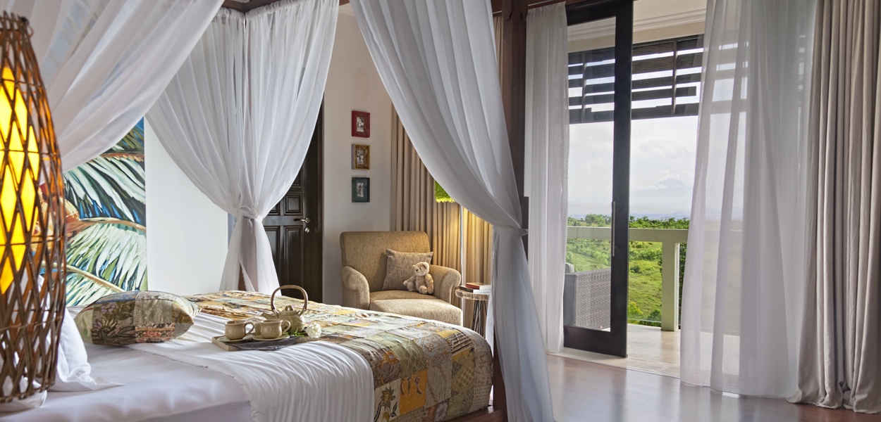 It is also blessed with the most outstanding wide angle views in Bali, stretching all the way off into the distant horizon and filled with beaches, towering volcanoes, offshore islands and the rich fertile plains of southern Bali. It's like being on the top of the world.